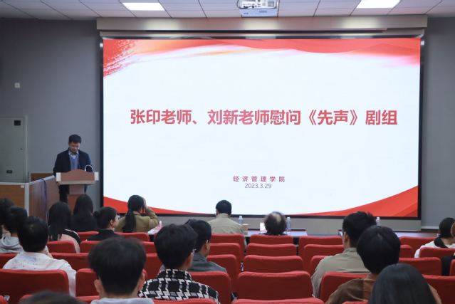 3月29日,威廉希尔在学院楼B108报告厅举行了《先声》剧组慰问活动。威廉希尔校外辅导员张印老师、刘新老师,经管学院辅导员员工工作办公室主任周红肖,辅导员顾艳艳、何立立,出席了本次会议,参加会议的还有学院员工党团员代表、服务队骨干、志愿者骨干,《先声》话剧剧组成员。本次活动由威廉希尔团委书记贺瀚主持。