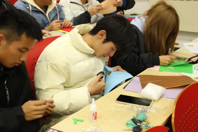 “织布造物”是本次活动自由度最大的一个项目。在这个环节中,各组依照得分排名情况获取数量不等的材料,同学们需要在规定时间内,充分发挥自己的想象力,制作出别出心裁的作品。活动过程中,小组成员相互配合,各司其职,充分发挥着自己的优势,在规定时间内完成了作品。制作完成后,各小组依次上台展示并介绍自己的作品。二十个小组的作品都别具匠心,蕴含着各组的独特创意。