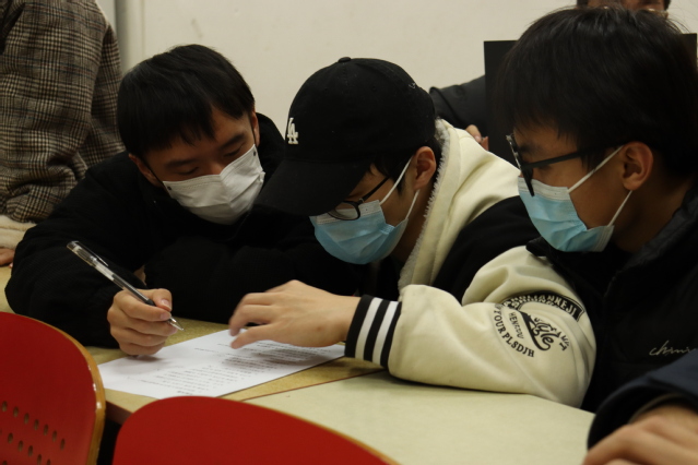 本次活动由“头脑风暴”、“红与黑”、“趣味水瓶”以及“织布造物”四个游戏组成。其中“头脑风暴”为答题游戏,小组成员须齐心协力限时完成知识问卷上的十道题,题目考察角度“刁钻”但充满趣味,十分考验同学们的知识储备。各小组激情讨论,争分夺秒,迅速完成了答题。