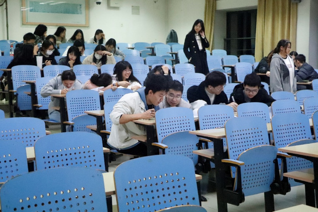 本次活动为初赛笔试环节。据悉,在此次竞赛开始前,同学便已经通过相关活动群了解题库知识,并在群内提出自己的疑问与见解。比赛期间,同学们准时到达现场,有序落座,遵守纪律,分成各个小组积极讨论,认真作答。所有同学作答完毕后,各部门负责人统一收卷,于当晚进行批改打分,进行分数汇总,并将进入决赛的同学名单公布到活动群中。
