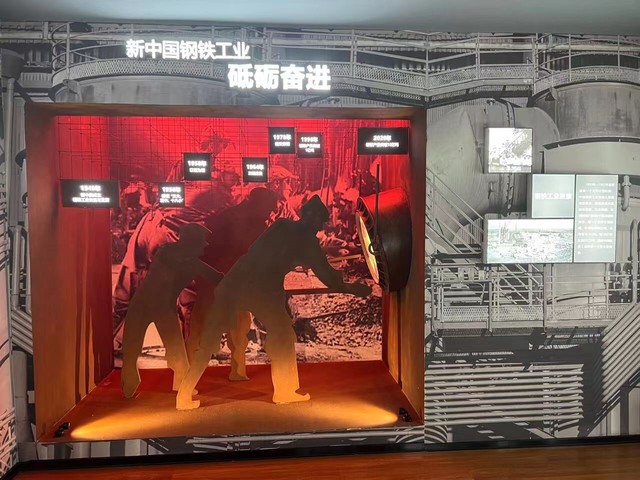 首先,实践团成员来到钢铁主题馆。钢铁主题馆以“钢铁志、中国心”为核心思想分为起源、传承和匠心三大方面,以层进式的手法,通过文明之光、百炼成钢、借法自强、砥砺奋进、璀璨功勋五个章节,再现中国钢铁工业发展起起伏伏、波澜壮阔的奋斗史。