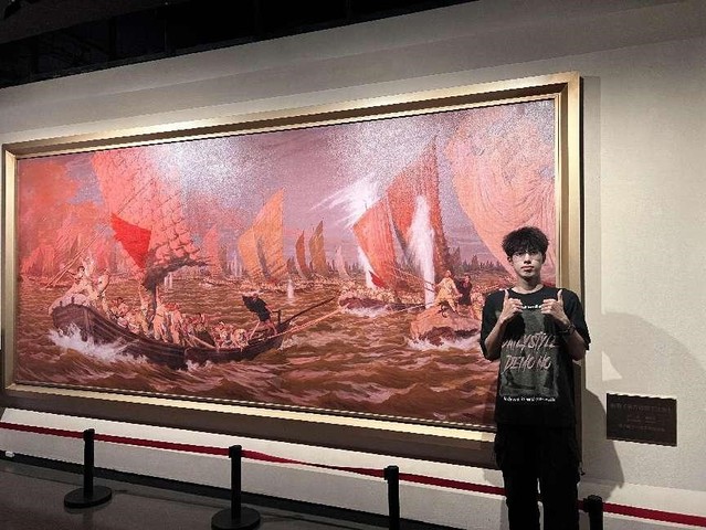 实践团成员吴建平与百万雄狮过大江绘画合照