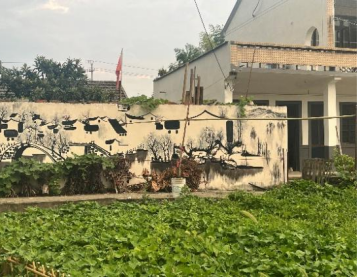 在参观过程中,实践团成员跟随项目负责人考察了项目施工的总体情况,实地了解到当地的地块、人口现状和美乡村改造建设的基本格局。目前村庄内大部分地区处于施工或待施工状态,景观风貌较为原始,仍然存在农村青壮年人口流失导致的老龄化、道路狭窄不平整、村庄建筑破旧布局杂乱、停车无序交通混乱等诸多乡村普遍问题。而据《天凝时光·杏福未来和美乡村示范片区初步设计方案》所示,工程将结合规划新建游客中心、对蒋村村委、厂房及沿路建筑进行改造提升,建成天凝和美乡村综合服务区;对村庄沿线菜园、宅前屋后绿化,道路白改黑、杆线上改下,增加滨水栈道及休憩景点,在保留原有特色符号的前提下修复破损建筑……未来,这里将被打造成“浙江江南水乡美员工活典范”、“嘉兴市和美乡村示范区”及“嘉兴市乡村夜经济发展先行地”。