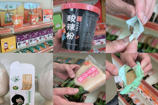 首先,该公司负责人讲解了魔芋的三大产品品类,包括魔芋粉、魔芋挂面和魔芋风味食品三大类,在各大品类之下还有魔芋片、魔芋粉、魔芋豆腐、魔芋膳食纤维粉等多种产品。明富魔芋公司针对不同的客户群体进行产品生产,其中,该公司生产的代餐食品因满足当代年轻人减重代餐需求而备受欢迎,而生产的魔芋凉皮酸辣粉等产品则远销北美等国外市场。