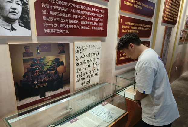 8月5日下午,实践团成员薛浩抵达晋绥军区高级军事会议高家沟旧址参观学习。实践团成员首先参观了纪念馆陈列的“红军东征—影响中国革命进程的一次战略行动”,通过讲解员的介绍,他了解到整个展厅陈列着珍贵的历史图片567张,文件图表298份,实物展品328件,纪念馆采用现代化声光电方式,制作红军东征渡河战斗四维互动场景和红军东征路线、主要战斗、重要会议地点的三维动态声光互动沙盘等,这些展示手段与陈列内容相配合,直观表现红军东征时的重要内容,有效提升了展陈效果。在参观中薛浩体会到了当时抗日时期高级将领的远谋深略,心中不禁生出对革命先辈的无限敬意。