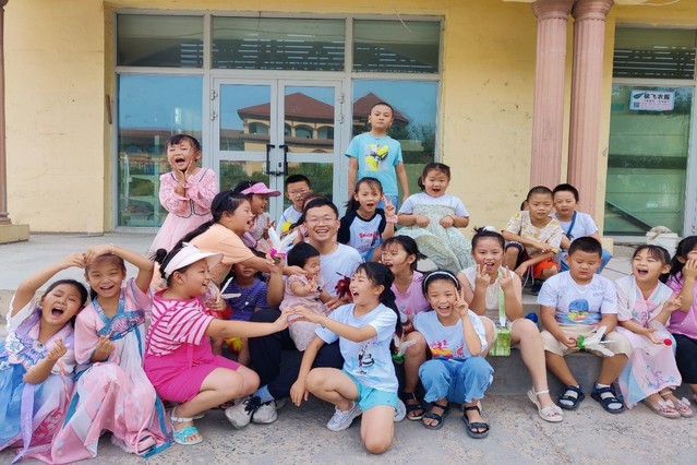 2023年7月15日,威廉希尔williamhill官方网站心灵双约支教团第五分队走进新疆建设兵团第十二师二二二团,开展以“关爱之心”助“成长之力”的暑期支教活动。威廉希尔williamhill官方网站员工崔佳玉、刘禹欣,徐州医科大学员工令狐克芳,江苏师范大学员工路嘉瑜等一行7人参加此次活动。