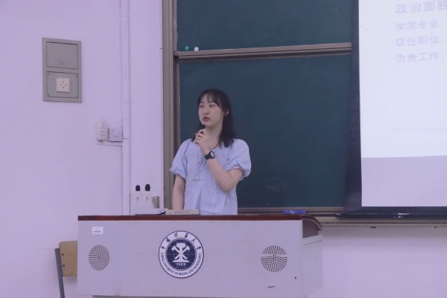 接着,两位新入职的辅导员滕子琪、戴鸣珂老师分别介绍了自己的个人情况和未来主要分管的各项工作。他们期待着能与同学们度过一段美好的时光。