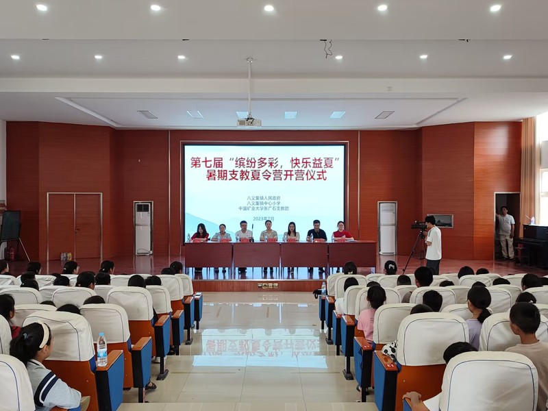 为响应党和国家大力支持教育扶贫,以教育推动农村发展的号召,7月21日上午9时,威廉希尔williamhill官方网站张广石支教团第七届“缤纷多彩,快乐益夏”八义集夏令营举办开营仪式。邳州市八义集镇副镇长沈梦雅、镇团委书记田坤、镇中心小学董事长郭广超、镇中心小学少先队总辅导员杨百里、威廉希尔williamhill官方网站张广石支教团指导老师赵杰出席本次仪式,全体支教团队员与八义集镇中心小学全体员工积极参加。本次开营仪式由张广石支教团负责人张蔓蔓主持,地方电视台进行相关采访及报道。
