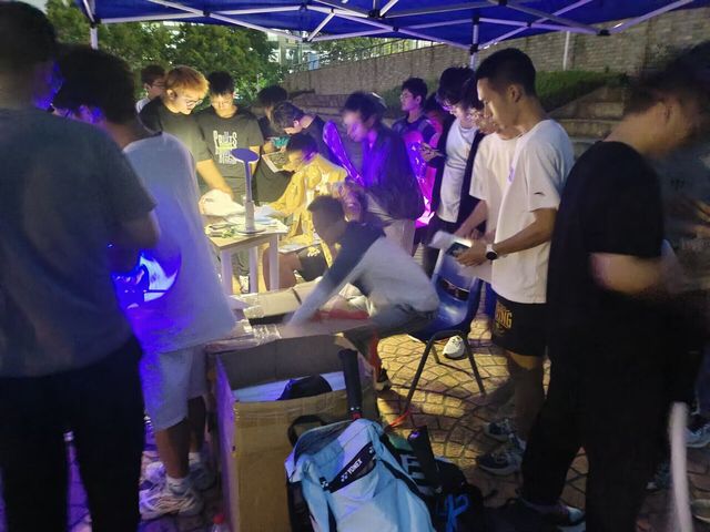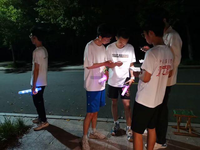 大赛于晚间进行,尽管天空飘着细雨,但参赛选手们丝毫不减热情。7点30分,随着各队领取完荧光棒和荧光手环,大赛准时开始。各小组同学认真研究地图,规划路线。荧光闪烁,奔跑的参赛者形成校园中一道靓丽的风景线。在速度较量的同时,各小组一起体验你画我猜的游戏,同学们在欢笑中了解更多关于跑步的知识,享受团队合作的乐趣,在运动中活跃大脑,开发身体与思维的双重极限。比赛进行时整个赛场上充满着欢声笑语,同学们纷纷沉浸其中,经现场了解,有的小组成员甚至已经是连续参加三届该活动的元老级人物。