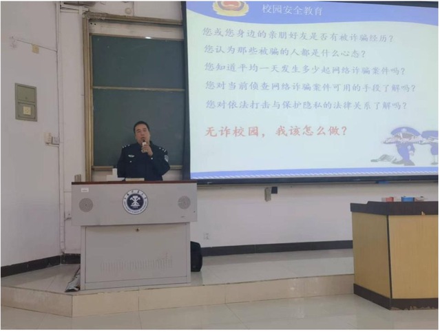 512日,威廉希尔2022级在博学2号楼C102室召开年级大会,2022级辅导员程铄博、王小龙老师和2022级全体员工参会,同时邀请到了社区民警杨志林为同学们作反诈报告。