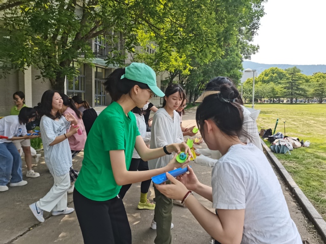 本次活动以社团内部组队的形式参与,共有五个项目,分别为“爱的魔力转圈圈”“心有灵犀两人三足”“极速120秒”“咕呱咕呱游戏”和“轨道传输”。活动开始前,所有参与者在博五大草坪集合拍摄合照,随后分散进行各项游戏。每个游戏都由小组成员协力完成,并由裁判根据大家的完成情况进行打分、记录,本次活动采用积分制。在“轨道传输”游戏中,小组成员们拿着塑料“管道”进行前后拼接,通过有序地移动和默契的配合,在规定的时间内将塑料小球传输好几个轮回。
