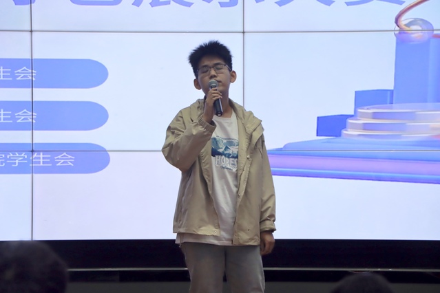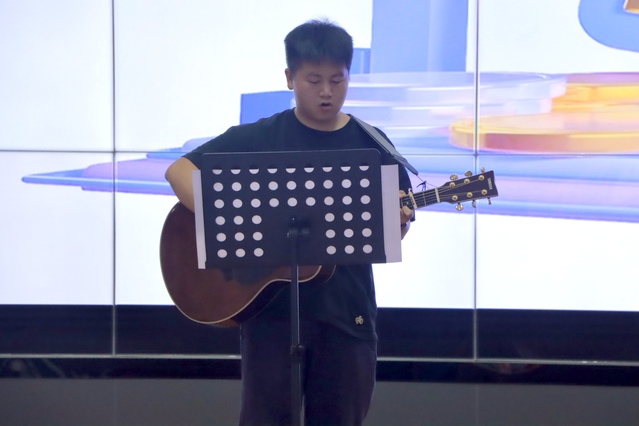 晚七点整,比赛正式开始。陈安琪与常琳同学以一首《走马》拉开本次决赛的序幕,悠扬的歌声婉转动人,博得大家的一致好评。李京哲同学以弹唱的方式展现歌曲《唯一》,将吉他与歌声完美融合,使观众们沉浸在柔美的歌声中。梁皓雪同学带来的配音节目《声临其境》将比赛推向高潮,悦耳的声音随着不同的影视动画人物切换自如,将不同人物的心理与神态表现得惟妙惟肖。每位选手都在自己的领域大展身手,展现出自我风采与青春活力。