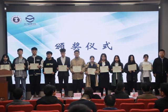 随后,进入评委点评环节。高蕾老师肯定了同学们富有创意的项目,同时指出同学们的创业项目都需要考虑需求和实施问题,应用脚步丈量大地,寻找大众最真切的需求,厚植中国大地,为中国的发展贡献方案和力量;张鹏德先生从自身所经历的创业经历出发,建议同学们要找准创业方向,做好定位选择,并为此做出不懈努力;杨忠习老师提出创新创业活动培育周期较长,学院应加强对不同时期项目的跟进和考核;车旎玥女士赞许了同学们的高质量作品,鼓励同学们在创新创业的赛道走得更远。最后,评委老师为获奖队伍颁奖,全体人员进行合影留念。