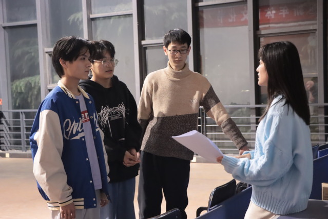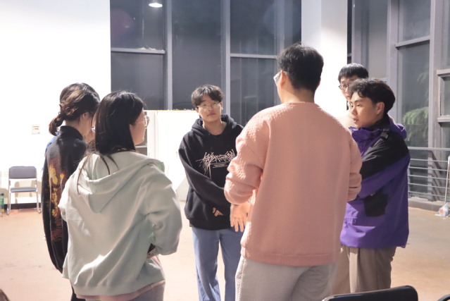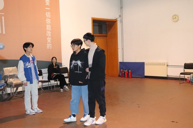 排练伊始,在与导演进行了简单交流后,三位演员立刻进入了状态,开始了十分投入的脱稿表演。随后,郭瑞阳学姐针对对演员们的表演对其给予了细致入微的点评和详尽的指导意见。她指出:“表演时一定要注意语音语调,要根据台词酝酿感情;有些地方不要太快,要加强力度,要突出一种坚定的感觉;演员之间要有互动,眼神或是肢体语言,注意动作要符合人物身份……”最后,演员们拿着剧本对了一遍台词,不断打磨,反复修改,力争让这次演出更加精彩。