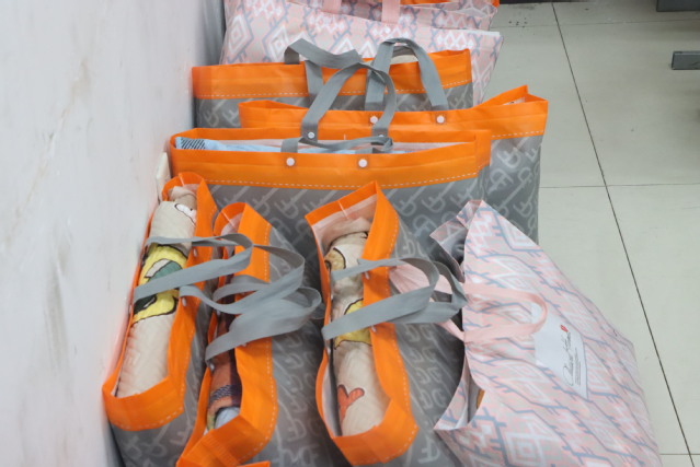 据悉,在活动前期,学院及年级辅导员老师精心调研了员工需求情况,为受助员工采购了爱心大礼包,其中包括棉垫、热水袋、手套、冬袜等冬季物品。