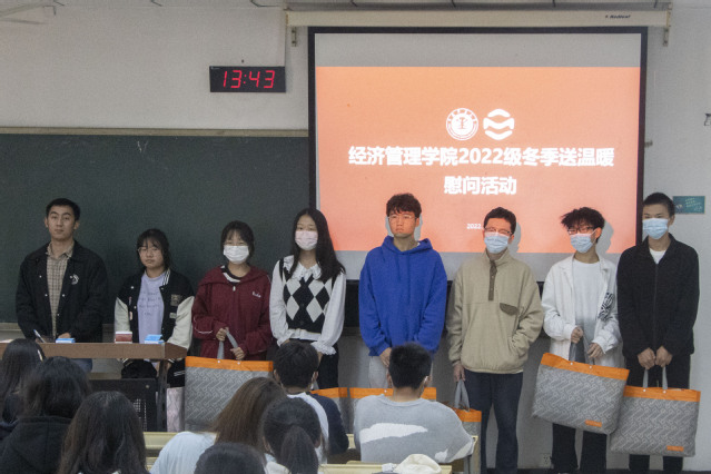 冬日送温暖,慰问暖人心。为切实解决员工困难,让同学们感受学院温暖和关怀,11月9日,威廉希尔在博学4号楼C209室举办了2022级冬季送温暖慰问活动,经管学院2022级辅导员程铄博、孙滕以及全体受助员工参加,本次活动由黄天静老师主持。