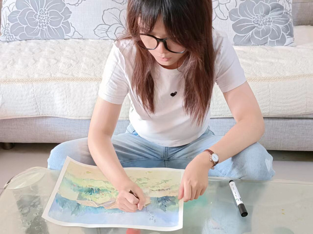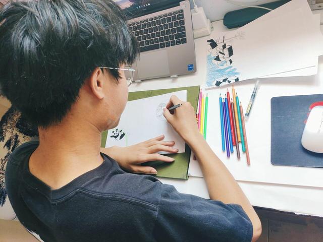 上午8时,实践团成员准备好绘制手稿的工具,开始墙绘手稿的设计。对于如何更好地呈现成员们各自的美丽乡村,实践团成员各抒己见。其中,成员卢春燕抓住“传统”二字,结合传统文化展现出传统乡村的面貌;成员解清盛将国宝大熊猫与自己的家乡完美结合,以展现出家乡的特色;成员刘子璇则将自己家乡的青山绿水活灵活现地描绘在纸上,呈现出生态文明建设下的美丽乡村……从内容的创作到色彩的应用,成员们都经过了反复的揣摩与修改。最后,通过成员们的努力创作,一幅幅关于美丽乡村的作品被创作出来,经过实践团探讨,成员们选择其中两份手稿作为本次墙绘的初稿。