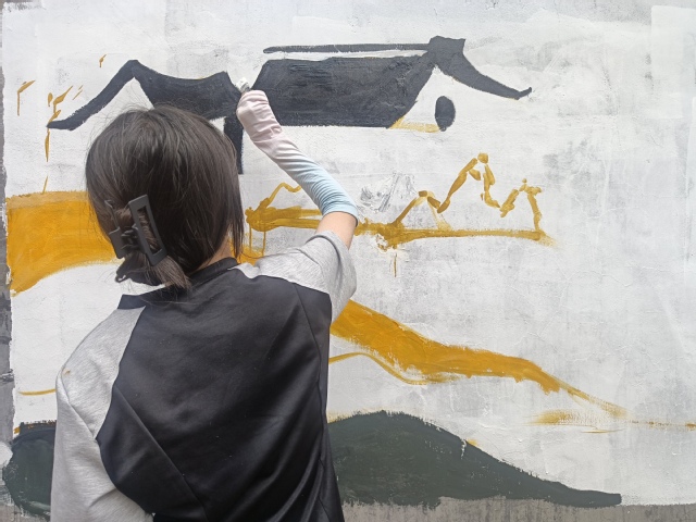 上午9时,实践团成员分别来到相应地点开始了墙绘的准备工作。首先,实践团负责人刘梦晨对本次活动的实践任务进行了明确的分工。随后,张圳安等同学进行认真细致的墙面粉刷工作。其他成员张奕霖,唐文雅则通过交流讨论,根据实地情况对墙绘构架进一步细化,力争将设计稿完美呈现出来。