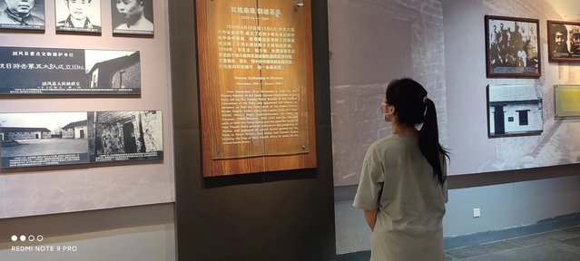 上午10时,实践团成员抵达新四军第五师旧址进行参观,成员看到泥瓦房里新四军生活的痕迹不禁感叹道:“新四军在如此艰苦的环境下生活,为国为民,为我们拼出了解放的道路,没有革命战士哪来我们现在安定的生活啊!”随后,实践团成员吴晨茜进入新四军第五师纪念馆参观学习。馆内陈列了新四军第五师大大小小的战役,详细介绍了新四军第五师的发展及功绩,包括师长李先念等众多战士所做出的巨大贡献。接着,实践团成员采访的一位参观者说:“我从未如此详尽地了解我身边的红色基地,这次参观让我心里对党的军队更生崇敬之情。”最后,实践团将整理参观过程中所拍摄的图片和视频,进行剪辑宣传,让更多人了解党的红色足迹。
