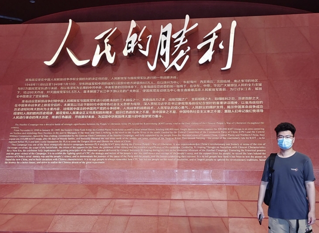 上午9时,实践团成员在淮海战役纪念馆门口集合。进入园区后,成员们首先来到了淮海战役烈士纪念塔,并瞻仰了纪念塔两侧的英烈墙,追思英烈的丰功伟绩。其中了解到,在英烈墙上已刻有三万多名在淮海战役中牺牲的烈士,至今仍在不断进行补录。实践团成员王书宇感叹:“我们如今的幸福生活是革命前辈们用生命换来的!”随后,成员们进入淮海战役纪念馆内,学习到了淮海战役的战略重要性及其取得胜利的重要意义,了解了先辈们的许多英勇事迹,如十人桥、贾汪起义、血战碾庄……同时,成员们也从红色历史中感悟到了革命战士们坚守信念的初心,更深刻地体会到了共产党员不怕牺牲、不怕苦、不怕累的精神和一切为了人民的坚定信念。在参观过程中,实践团成员看到了特意来学习参观的员工,也看到了很多自发来参观淮海战役纪念馆的市民,当被问到为什么来参观时,马先生回答道:“这是爱国教育,我有时间就带孩子来这里,来参观过好多次了,对淮海战役也是较为了解的。这是我们的历史,很有学习教育意义。”活动结束后,成员刘明翰感慨:“虽然身体疲惫,但是我们都被革命先辈的精神激发起内心的爱国热情,这激励我们要更好地学习,更好投身到祖国未来的发展之中”。