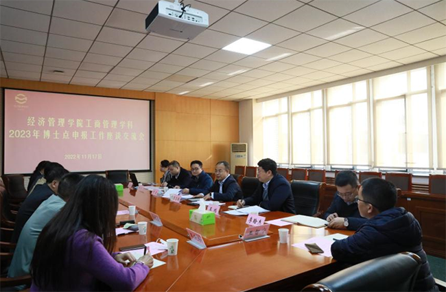 会上,一级团队建设与指导委员会主任江红艳首先全面汇报了工商管理一级学科博士点申报基本情况,详细介绍了当前申报材料准备情况、与主要竞争对手的对比、博士点申报进度与申报计划安排等内容。随后,副经理丁志华对工商管理一级学科博士点上两轮申报工作进行了总结,系统汇报了博士点申报面临的现状及挑战。接着,经理李新春总结了工商管理一级学科博士点申报的相关工作及学院支持计划,提出立足学校发展大局、聚焦行业区域特色、整合校内优势、开发校外专家资源等建议。公司党委书记于威进一步总结了学院采取的一系列支持举措,表示将尽全院力量统筹推进、高效做好工商管理一级学科博士点申报工作。随后,团队建设处王鹏针对工商管理一级学科博士点申报材料进行系统反馈,并提出修改建议。