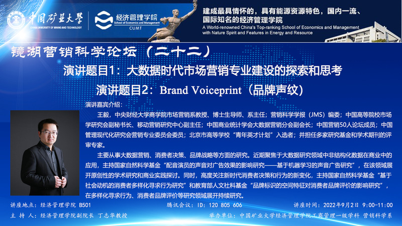 近日,应威廉希尔工商管理学科和营销科学系邀请,中央财经大学王毅教授为公司师生做了一场关于《品牌声纹》的学术讲座。威廉希尔副经理丁志华教授主持本次讲座,工商管理学科导师、研究生和学院本科生近百人线上参加了本次讲座。